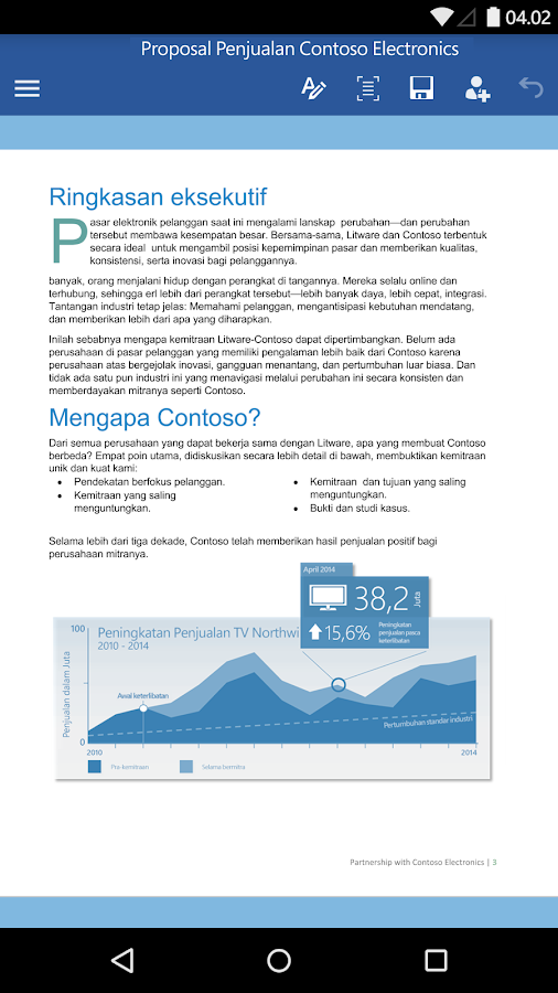 Namun aplikasi Microsoft Word, Excel dan Power Point mengharuskan untuk perangkat android anda memiliki RAM minimal 1 GB agar dalam pengoperasiannya lancar dan tidak ada masalah teknis. Dari segi pandang tampilan, aplikasi-aplikasi tersebut tidak jauh berbeda pada aplikasi yang ada di PC/Notebook, fitur-fitur antara pada android dan PC/Notebook hampir sama. Kemudian apa untungnya jika kita menggunakan aplikasi-aplikasi tersebut ? Pertama, pada saat kita dalam perjalanan, jika kita akan menulis momen yang baru saja terjadi, kita dapat menulis momen tersebut dengan rapi, bahkan bisa disertai gambar dan video. Selanjutnya, untuk pelajar dan mahasiswa bisa memanfaatkan aplikasi-aplikasi ini sebagai sarana untuk mencatat pelajaran yang diajarkan saat Kegiatan Belajar Mengajar dan Kuliah. Anda bisa mencatat apa saja yang ingin anda catat tidak ada batasan untuk setiap kata yang akan dicatat. Anda dapat mengerjakan tugas dengan mudah dengan aplikasi ini.